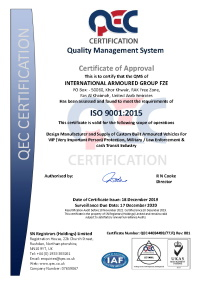 International Armored Group is certified under ISO9001-2015, ISO14001-2015, ISO10002-2014, ISO27001-2013, ISO31000-2018, ISO45001-2018.